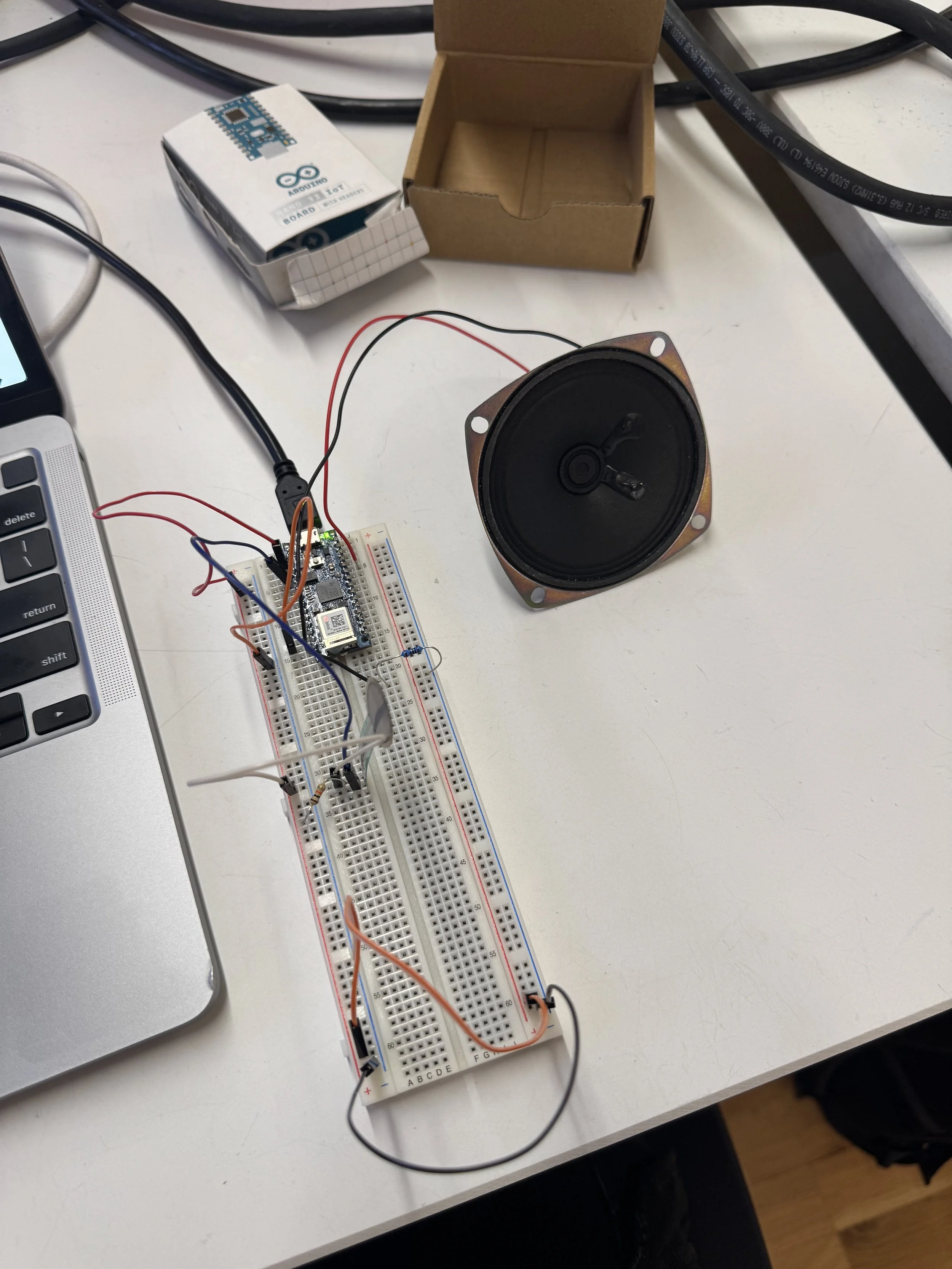 Then I tried to connect the tone output of an Arduino to headphones. However, I tried twice, and the audio jack didn't fit through the breadboard, which was frustrating for me. I will clarify this during the class.